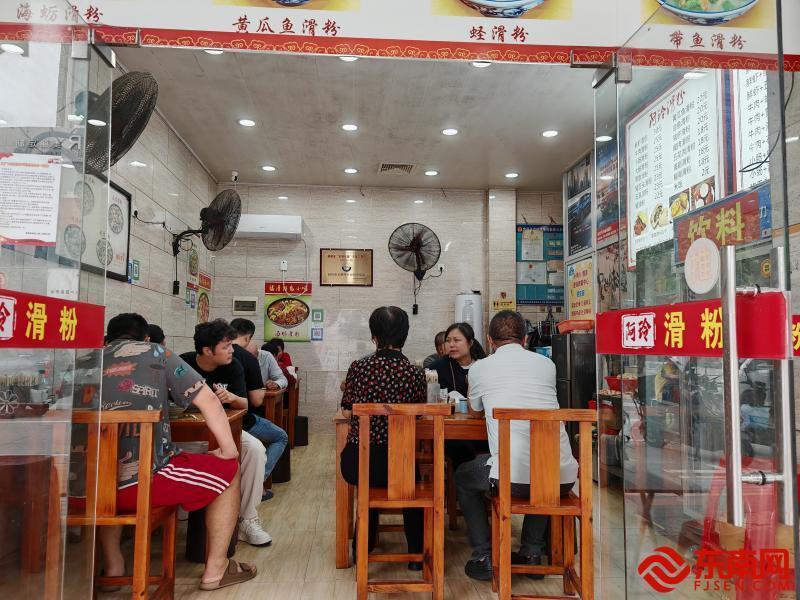 阿玲滑粉店内(东南网福清站记者王倩雯 摄) 中午十一点半,阿玲滑粉店内坐满了人,服务员端着碗穿梭在餐桌间,偶尔还要回应顾客“加份小吃”的要求。 “我们开了快10年了,都是老顾客多。”店主孙先生介绍,“每天早上起来准备食材,滑粉都是手工做的,客人吃得放心,我们也踏实。”