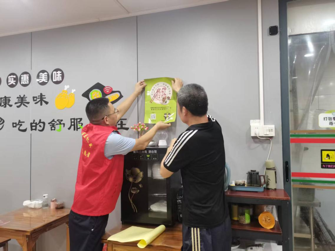 联合福清市委文明办举办福清市公共文明素养提升行动,广泛开展宣传动员。通过线上微信公众号、辖区商户LED,线下发放文明用餐宣传手册、张贴反餐饮浪费宣传海报等方式向市民群众普及文明用餐新理念。目前共发放宣传资料1600余份。 精细引导践节约,让绿色消费蔚然成风