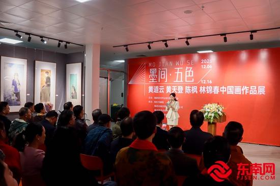 东南网福清12月6日讯(本网记者 俞雅萍 图/文)12月6日,“墨间・五色”黄道云、黄天登、陈枫、林锦春中国画作品展在福建省越洋图书城艺术馆启幕。本次展览汇聚了四位闽籍艺术家230余幅精品力作,并创新融合系列特色文创产品,以“艺术+产业”的跨界模式,生动实践“以画为媒、讲好福建故事”。