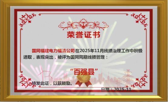 东南网福清12月16日讯(通讯员 陈克燕)近日,国家电网公司公布11月份同期线损百强成绩,国网福清市供电公司再次荣获“百强县”称号,同时城区、宏路、渔溪、江阴、海口、音西等6个供电所被评为“百强供电所”。