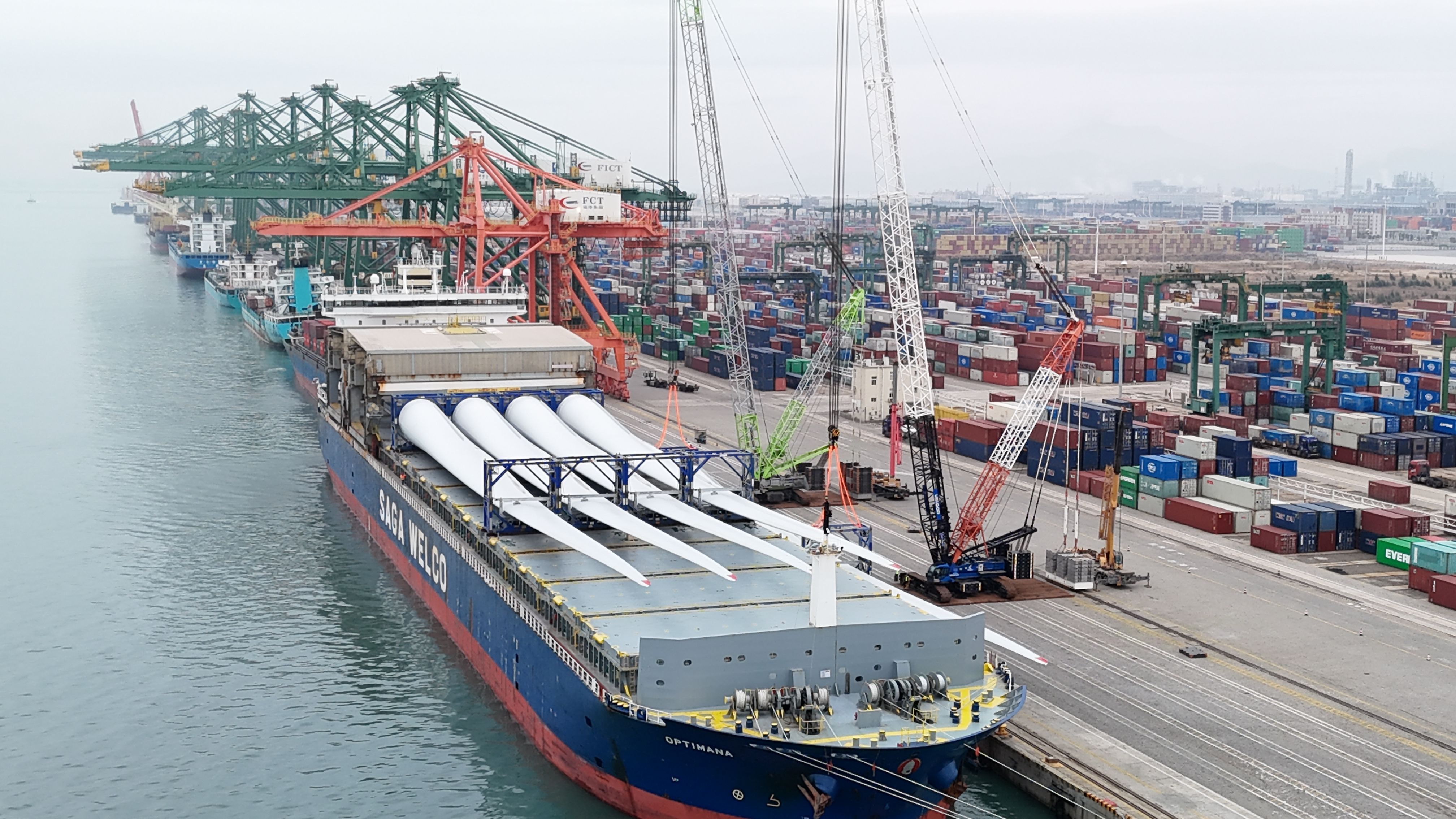 百米“巨无霸”跨海赴英 今年以来江阴港区共出口17批130片风电叶片
