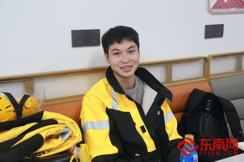外卖员杨逍(东南网福清频道记者 郑梦婷 摄) 二十九岁的杨逍,贵州人,中专毕业后来到距离家乡2364公里的福清,今年是第十个年头。先在工厂,后来送外卖。妹妹中专毕业后换了几份工,总是干不了几天就放弃。他说起这事,只是淡淡一句“她还小”,再不多言。这个春节,他选择留下。“想多攒点钱。”理由简单,却也足够。