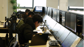 兴化湾海上风机 真实的福清兴化湾海面上,那些风机正以同样的节奏转动。而就在三峡产业园大楼内,三峡福建集控中心的巨幅屏幕上,它们的每一次转动都被实时显示。