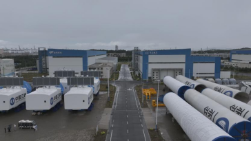 产业园区一角 这个试验风场的诞生,承载着特殊的使命。2017年,这里引进了国内外8家主流风机厂商的14台5兆瓦及以上风电机组“同台竞技”,为全球首创。这种敢于让国内外顶尖技术同场比拼的开放姿态,倒逼自主创新能力迅速提升。从2017年建设之初国内主流海上风机单机容量停留在5兆瓦左右,到如今三峡产业园内相继下线6.7兆瓦、8兆瓦、10兆瓦、13兆瓦、16兆瓦、18兆瓦、20兆瓦直至26兆瓦的海上风电机组,一项项纪录在三峡产业园被刷新。