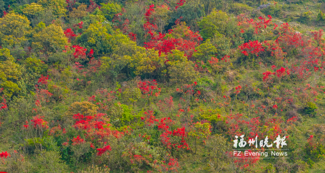 连日来,位于福清市南岭镇大姆山东南侧的野生杜鹃林迎来了绚烂时刻。113亩鲜红杜鹃竞相绽放,铺展于山巅与草甸之间,如火如霞,吸引众多市民游客前来踏春赏花。